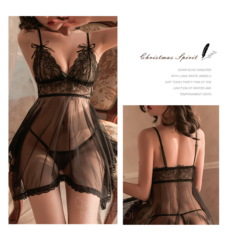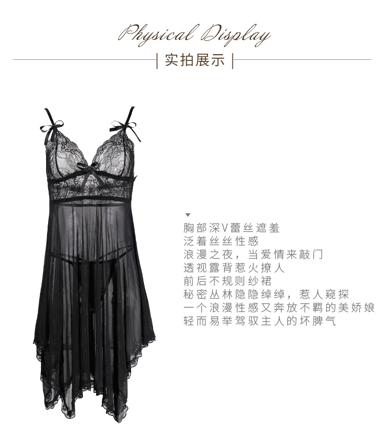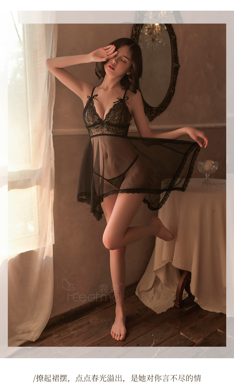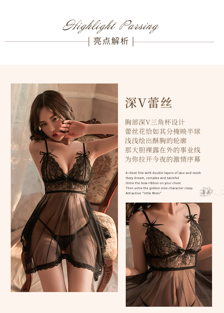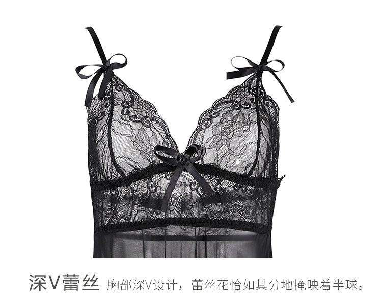 霏慕蕾丝裹胸性感吊带睡衣深V透视情趣内衣挑逗激情套装7891近期发货通知